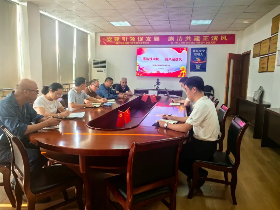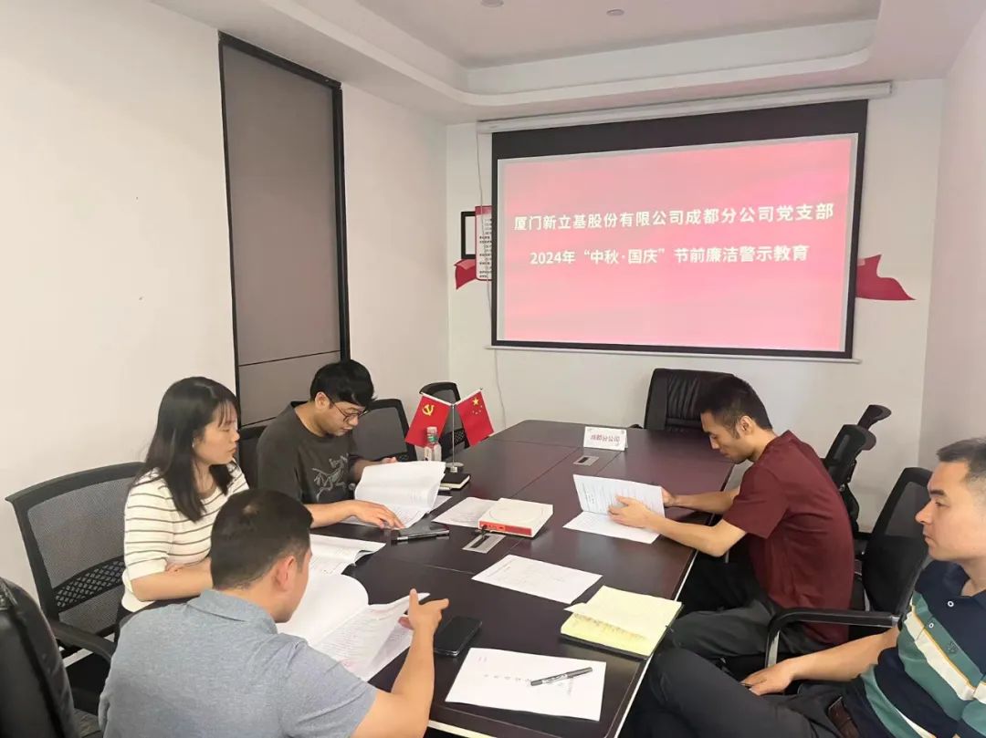 中秋、国庆双节将至,为深入贯彻落实中央八项规定及其实施细则精神,进一步加强党风廉政建设,提升党员干部的廉洁自律意识,营造风清气正的节日氛围,厦门新立基各党支部组织开展节前廉政教育活动。