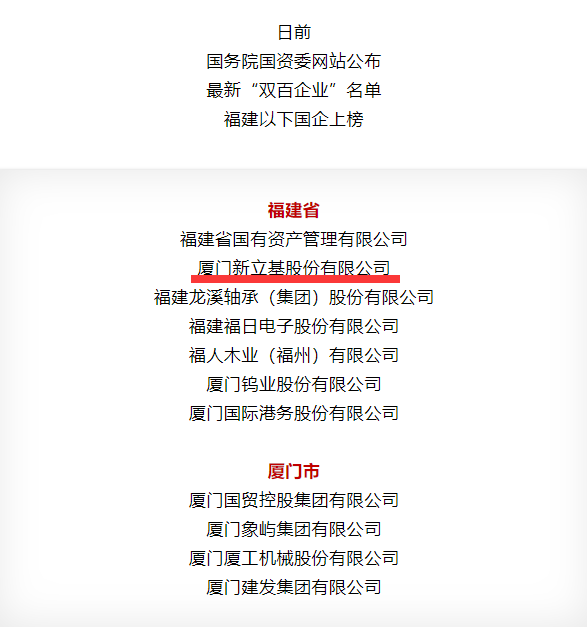 日前,国务院国资委网站公布最新“双百企业”名单,福建省共11家企业上榜,开云网页版·官方版在线登入成功上榜。在此前结束的2021年度全国“双百企业”评估中,厦门新立基公司获评“优秀”等级。