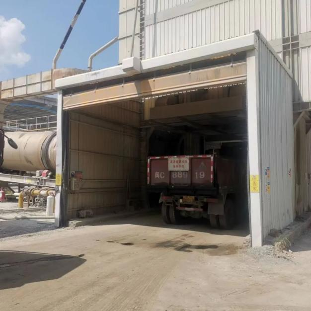 漳州新立基安溪分公司沥青拌合场内,斗车正在装载沥青混合料