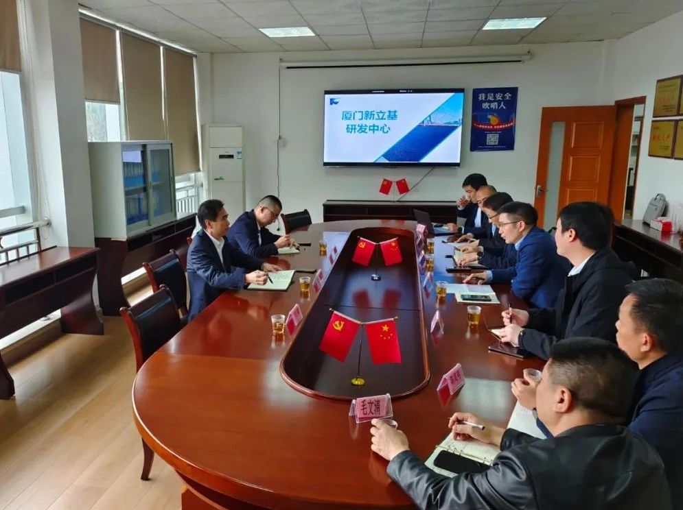 3月30日,福建港口集团党委书记、董事长陈志平一行莅临厦门新立基研发中心开展工作调研。公司党委书记、董事长郑良东,党委副书记、总经理连晓琪陪同调研。